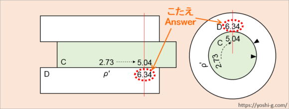 (2)D 尺の「5.04」 にカーソル線を合わせます。